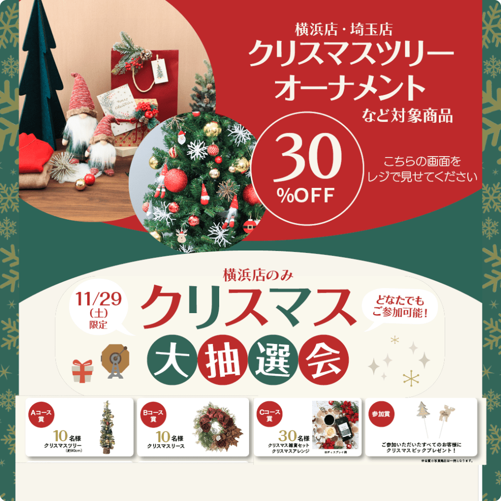 11/29(土)は横浜本店限定で、クリスマス大抽選会を開催いたします!