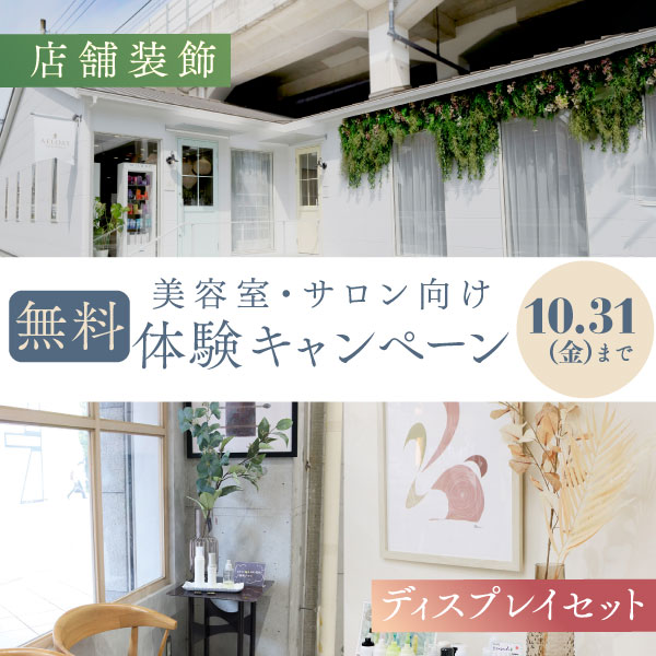 期間限定で、店舗装飾もしくはディスプレイセットの無料体験キャンペーンを実施しています。 -