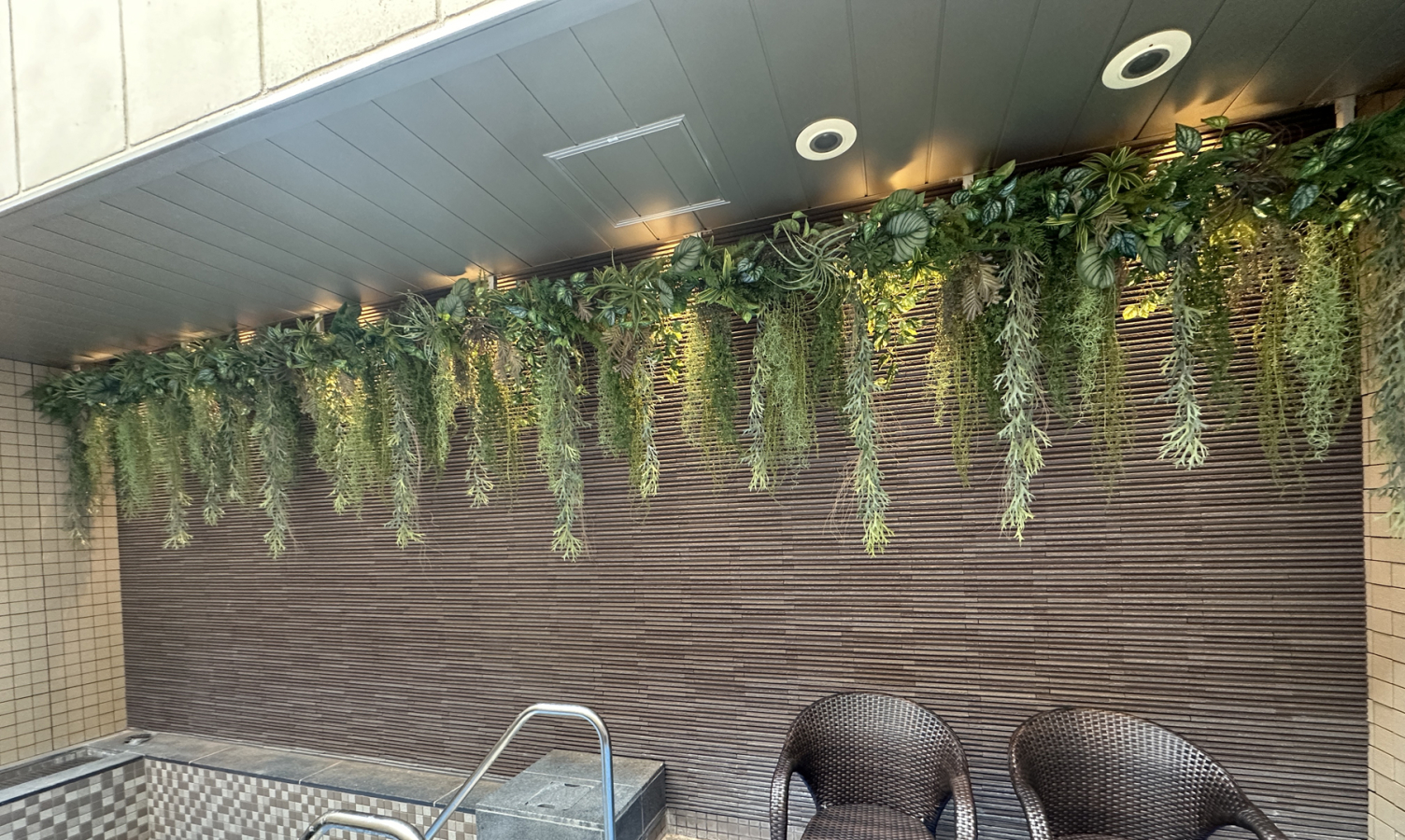 スポーツクラブ&サウナスパの露天風呂グリーン装飾