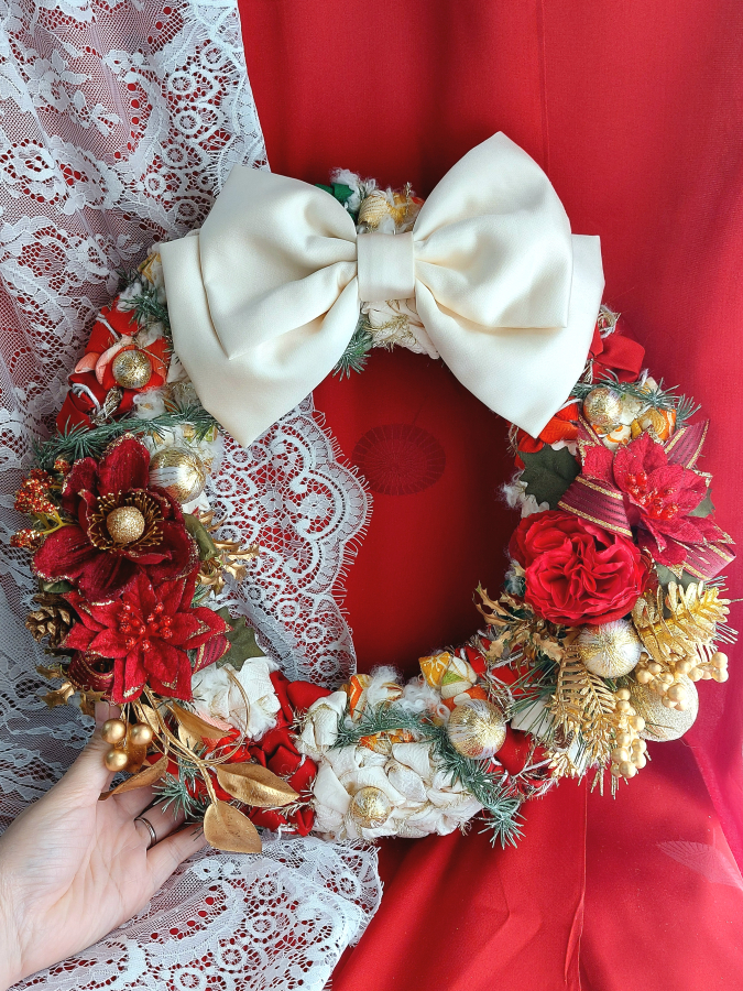 見本画像は約40cmのリースでクリスマスリースとして制作したものです。
