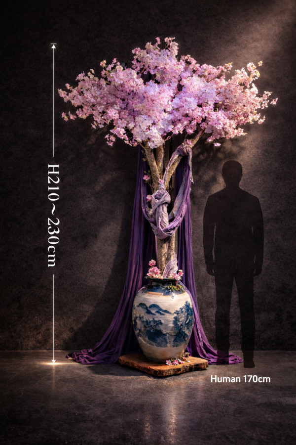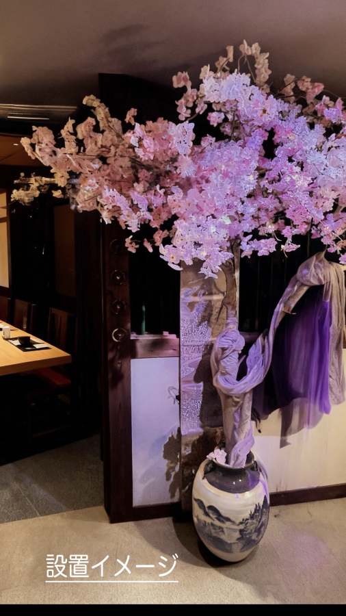 天然木の幹を使用した重厚感あるモデルと、軽量素材を用いた施工性重視の軽量モデルの2タイプから選択可能な桜のインスタレーションです。