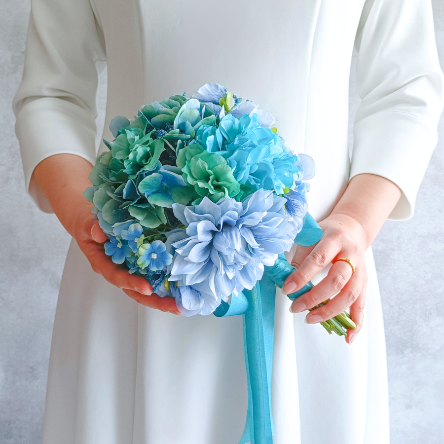 〖一点限り〗ウェディングブーケ|BLUE×GREENラウンドブーケ