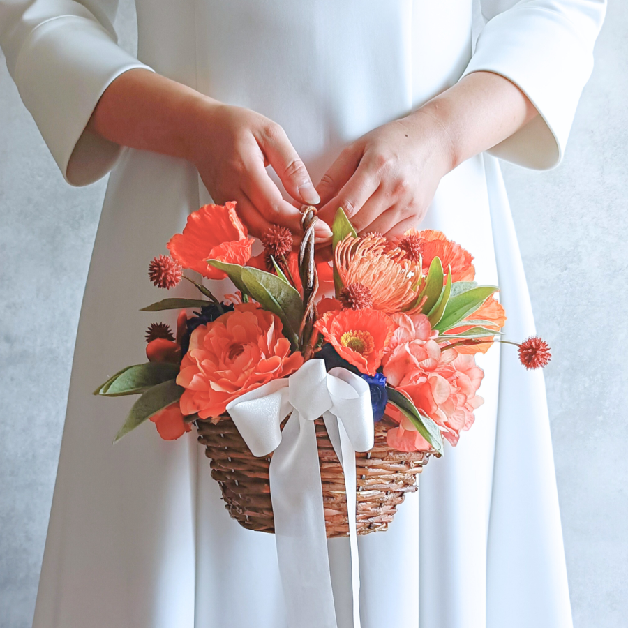 〖一点限り〗ウェディングブーケ|Orangeポピーのバスケットブーケ -