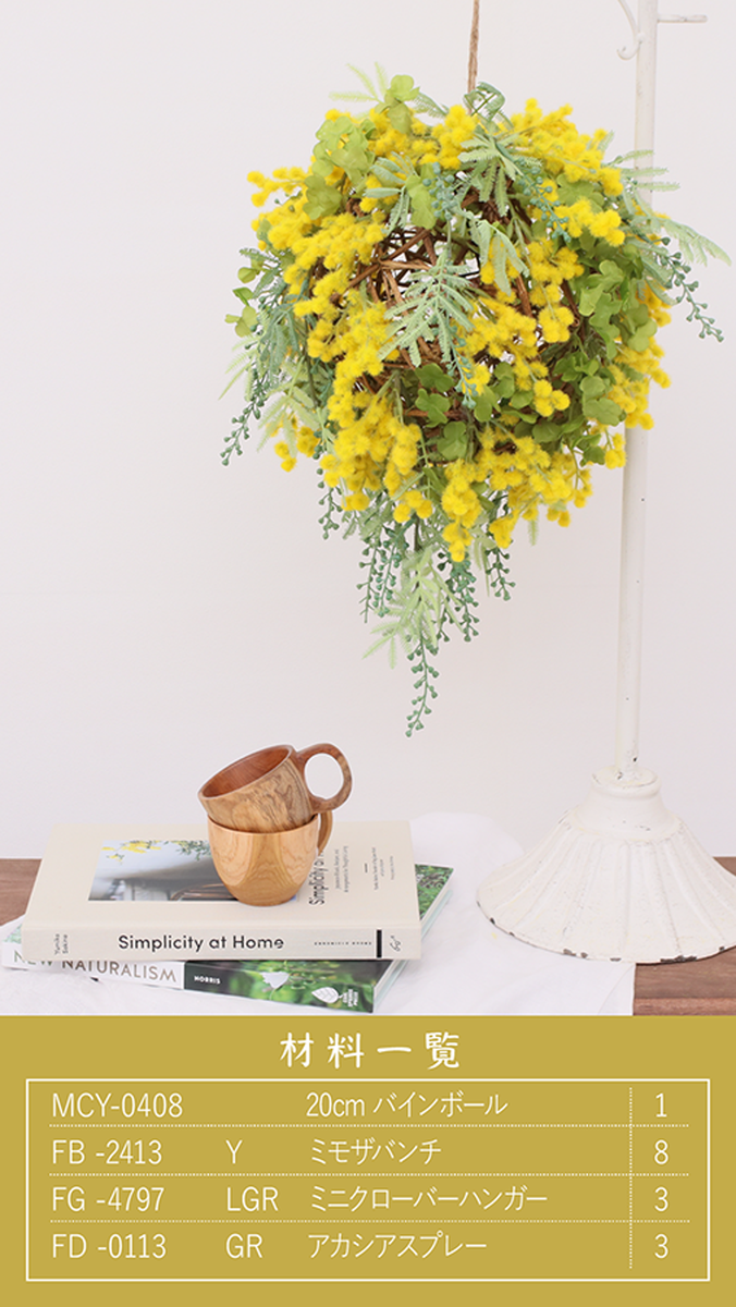 【造花アレンジ】ミモザボールリース(制作動画あり)