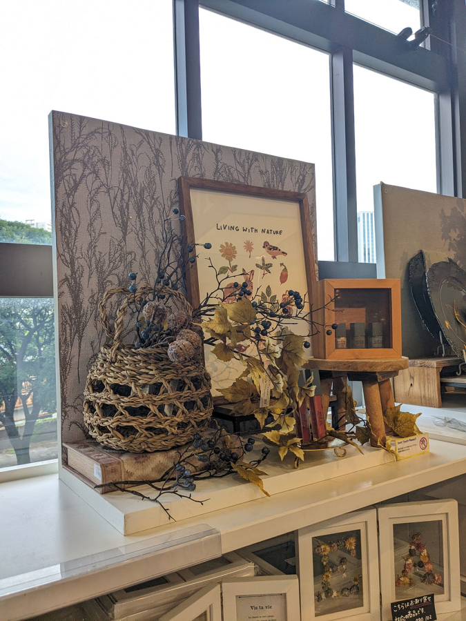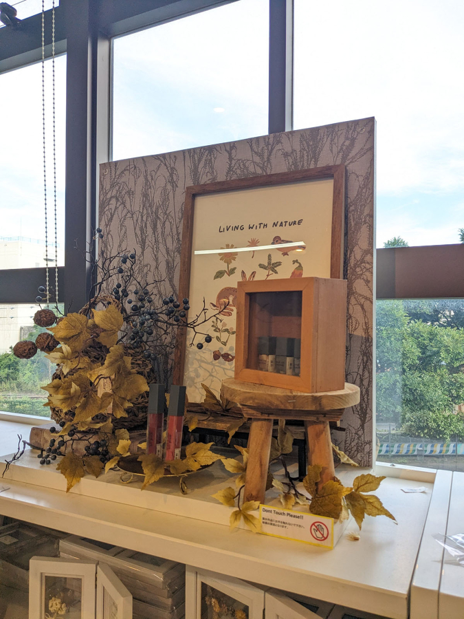 アーティフィシャルナッツとベリーを使ったコスメ売り場の秋のディスプレイイメージ