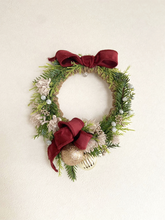 リボンでリースを結んだように見えるように、背中側もかわいさを詰め込んで仕上げています!
