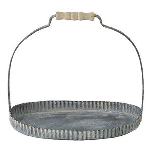 【個人宅配送不可】(3)ラギッド ハンドルブリキトレイ ラウンド Lサイズ
