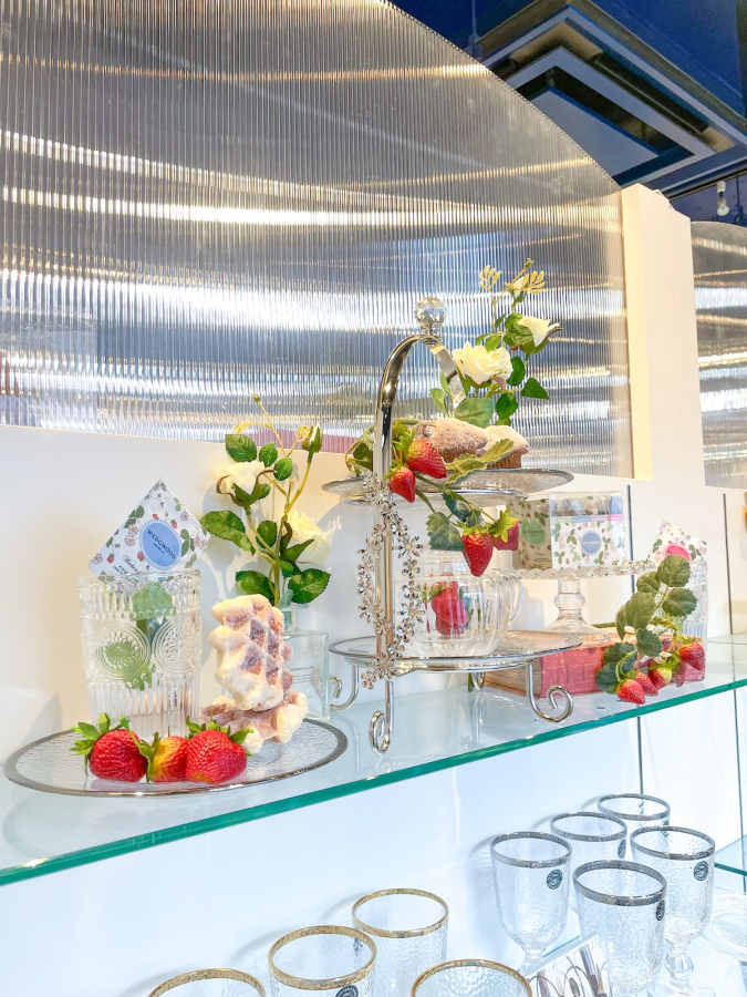 フェイクフルーツとケーキを使った洋菓子店のディスプレイイメージ