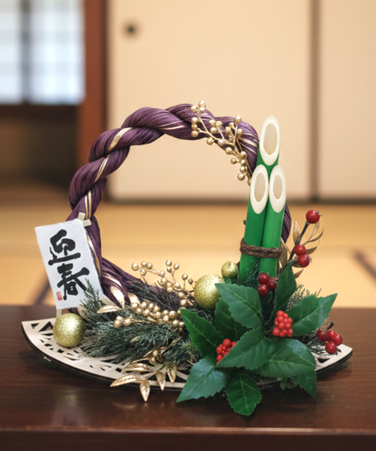 お写真を撮り終わった後は、スタンドアレンジとしても飾れるしめ縄飾りにもなります。