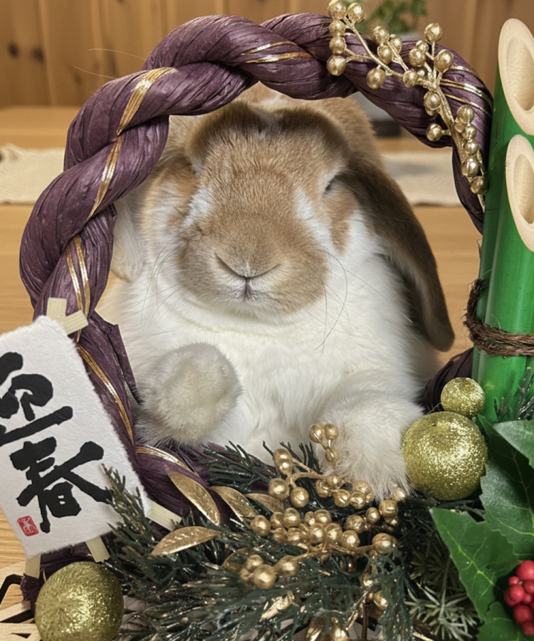 ペットと一緒に!シーズンのアレンジを楽しもう~2026お正月~ ースタンドアレンジとしても飾れるしめ縄の顔はめ飾りー