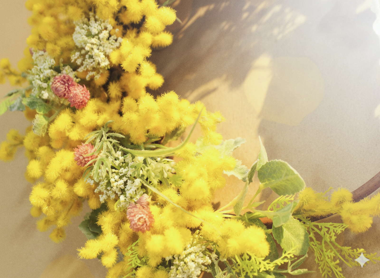春をそっと迎える、ふんわりミモザのナチュラルリース~
