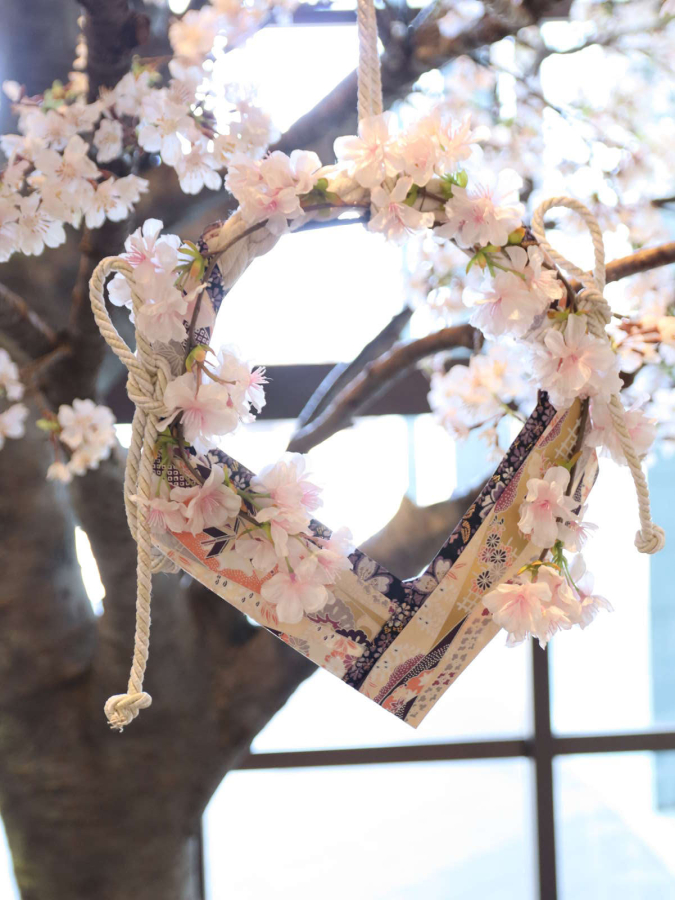 わんちゃんの肌に触れても痛くないコットンのリースを土台に、和を意識した桜アレンジにまとめてみました。