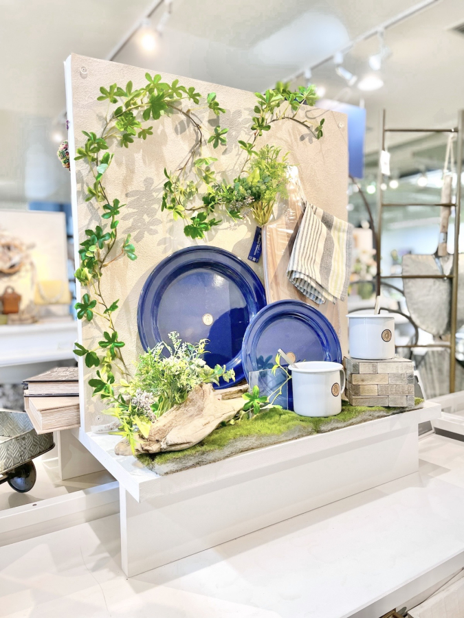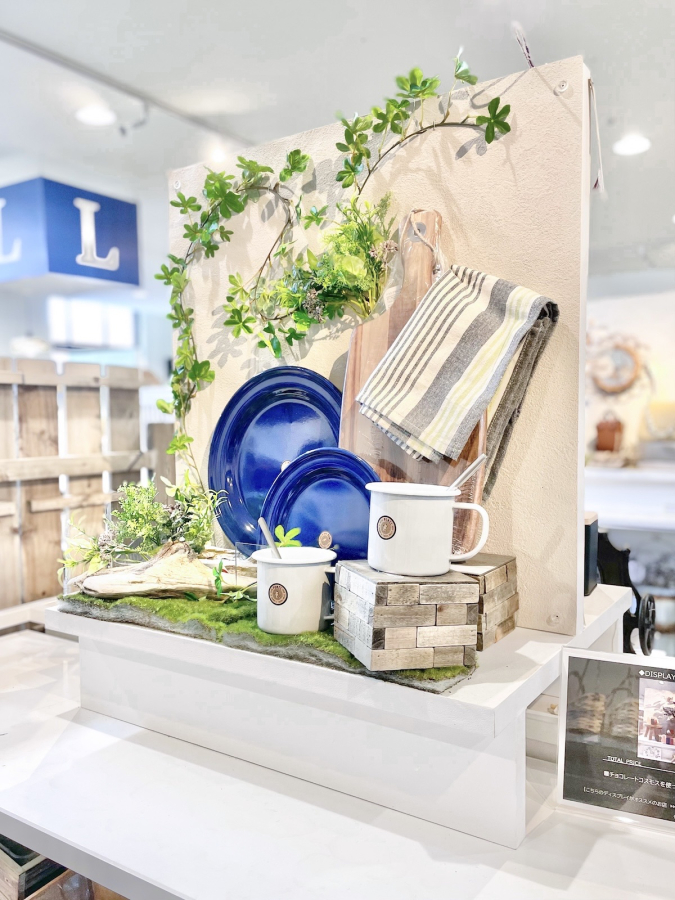 シサスガーランドを使った春のアウトドアショップのディスプレイイメージ