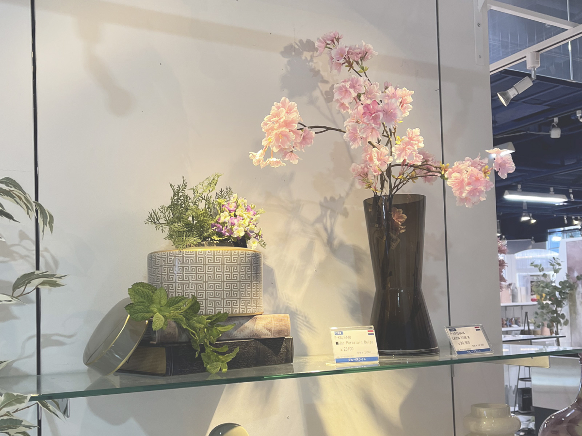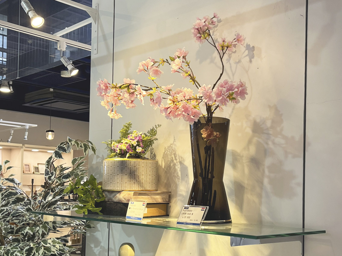 ミニビオラと大島桜を使った春のモデルルームのディスプレイイメージ