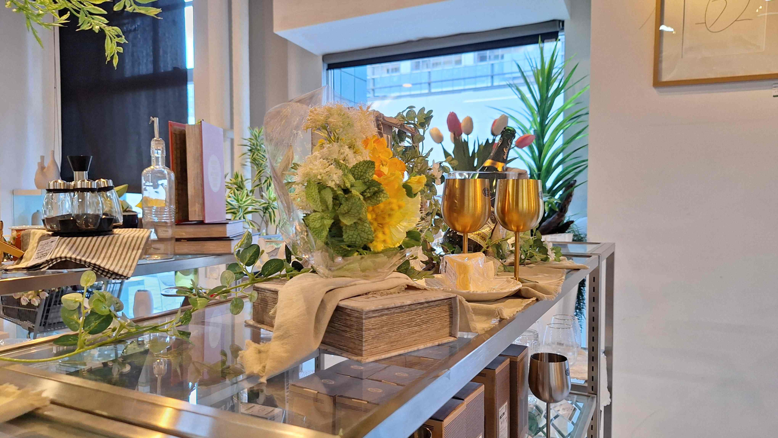 ジャスミンガーランドを使った春のレストランのディスプレイイメージ