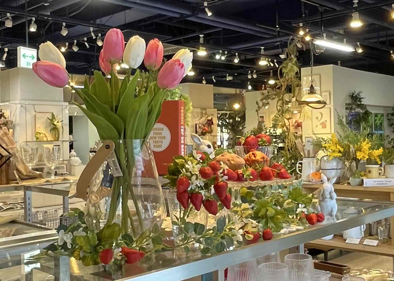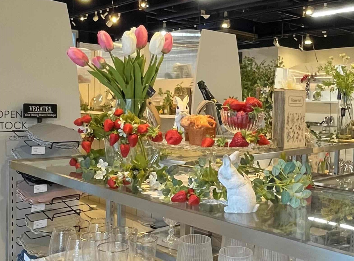 チューリップといちごを使った春のレストランのディスプレイイメージ