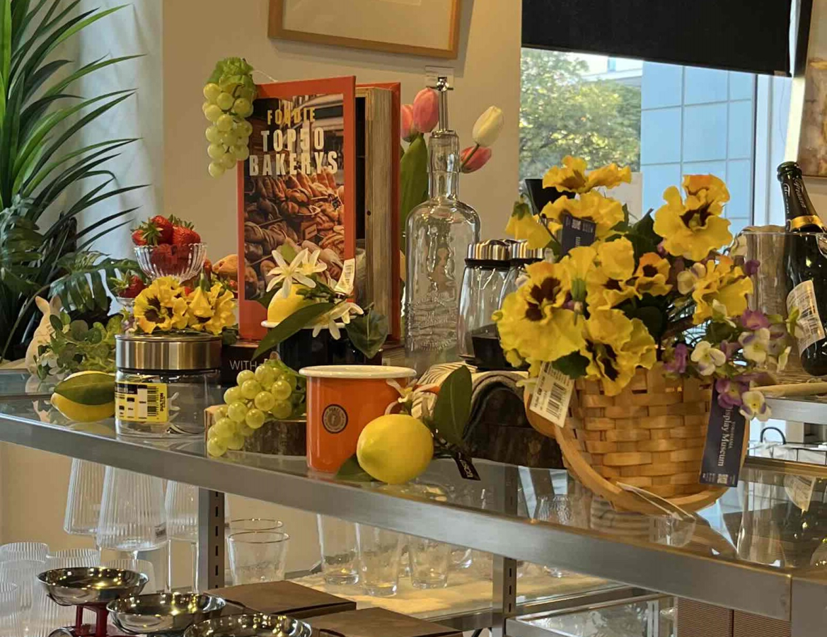 パンジーとレモンを使った春のレストランのディスプレイイメージ