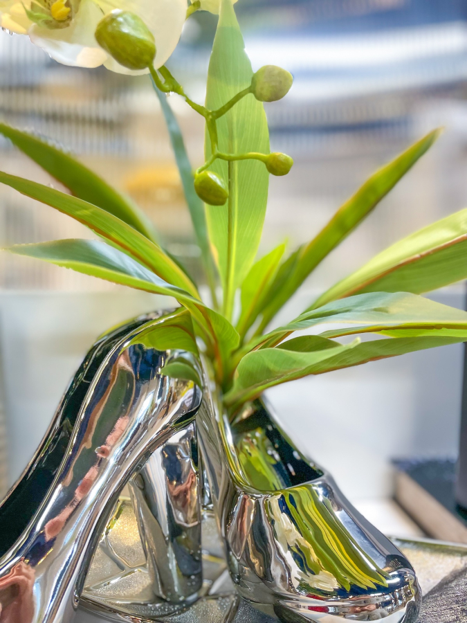 Planter Shoe Fine Earthenware Silver 21x9.5x17cm