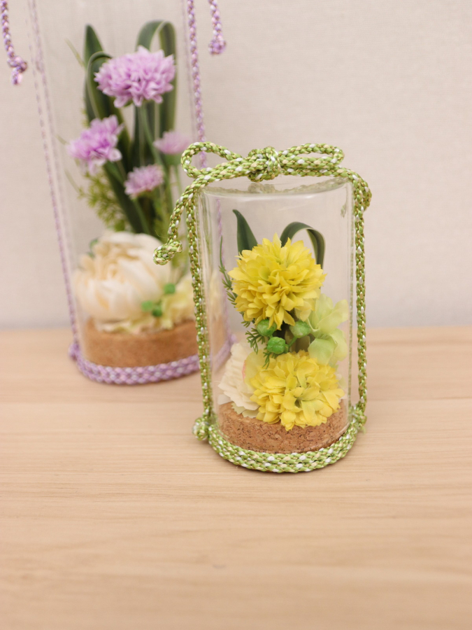 コンパクトで飾りやすいドーム型 コルク大(パープル) コルク小(イエロー)