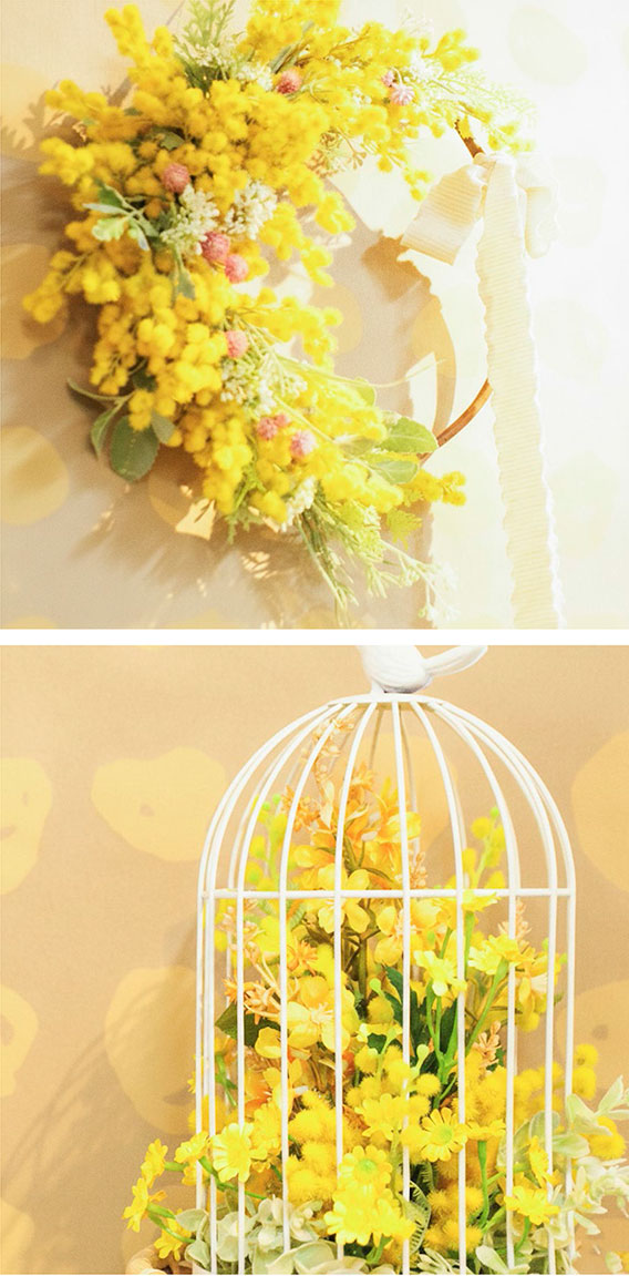 春の優しさを閉じ込めた、ミモザの鳥かごアレンジ