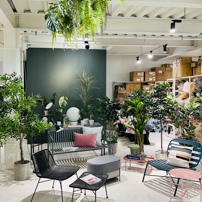 台中建南行花藝資材(JIANNAN HANG ジェンナンハン)は、ものづくりを支える専門店として台湾で注目されています。台湾でもグリーンディスプレイの人気が高まるなか、新店舗の広い空間に多彩なグリーン装飾の事例を展示。クリエイターの表現を広げる豊富なアイテムが揃うショップとして、その存在はさらに広がりを見せています。