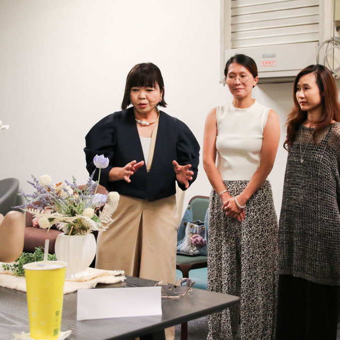 Aさん(デザイナー) 台湾にはライセンス制度がないため、信用性の高い日本のライセンスを取得したいと思い参加しました。参加してみて、深い知識とテクニックが学べ、すぐに仕事に活かせると感じました。   Bさん(フラワーデザイナー) 「花の知識を活用して仕事の幅を広げたい、新しいチャレンジとして参加しました。今まで経験のなかったプラン提案やプレゼンテーションのスキルは、今後の仕事に必ず活かせると感じています。   Cさん(不動産関連) 日本のデザインや理論に興味があり参加しました。専門分野ではありませんが、学んだ内容を自分の不動産販売の現場でもチャレンジしてみたいと思いました。