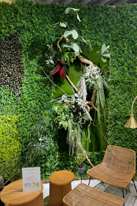 新店舗に移転後は、店舗やオフィスなど空間装飾のご依頼も増えているようです。 ジェンナンハンの社長MAXさんは「台湾全土でのグリーン装飾の高まりを感じている」 と話し、その広がりを日々実感している様子でした。