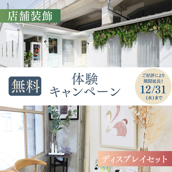 期間限定で、店舗装飾もしくはディスプレイセットの無料体験キャンペーンを実施しています。 -