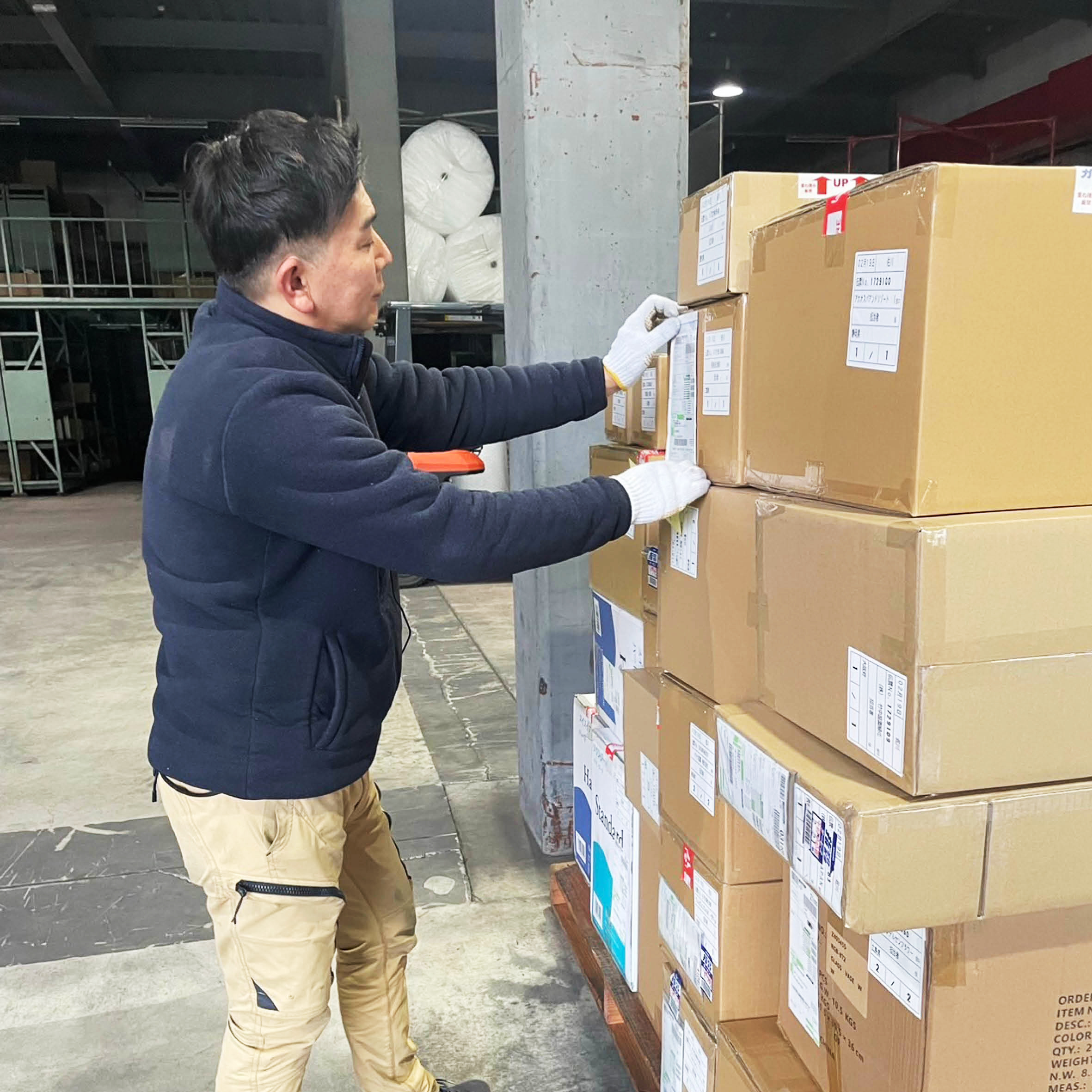物流部にて、主に第一営業部と第二営業部一課の出荷業務を担当しております。出荷伝票をもとに倉庫内での商品のピッキング~検品・梱包作業、梱包完了した商品を運送会社へ荷渡しするところまでが主な業務になります。また週に2~3日程度荷降ろし業務を行っています。在庫管理や資材の入荷検品、年度末には棚卸し業務など、様々な業務を行っています。