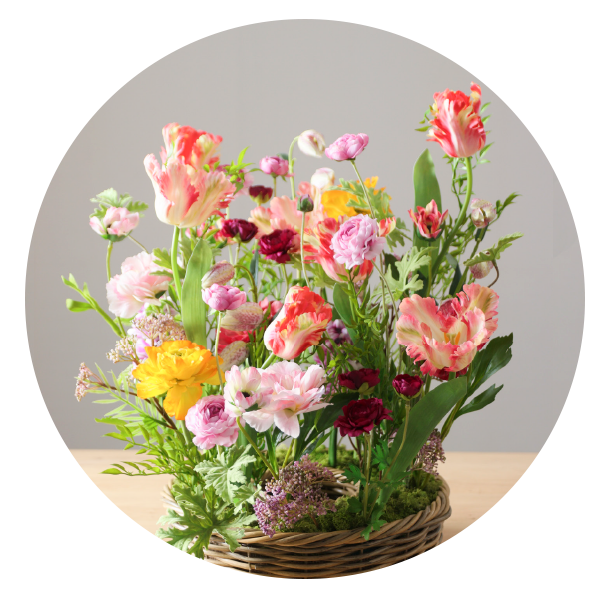 フラワースクールやワークショップのアレンジを展示。コンテンツをお探しの方必見!