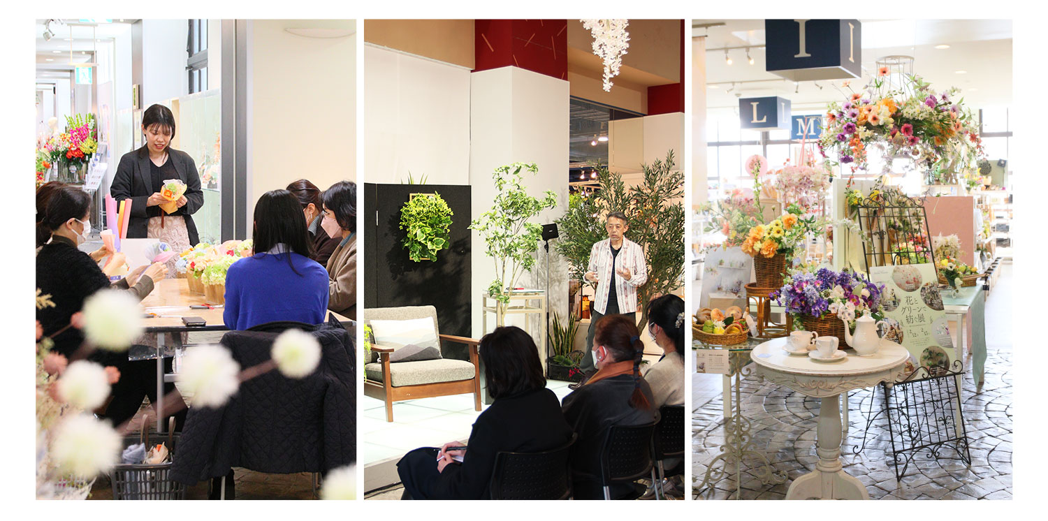 ” 花とグリーンで紡ぐ展 “期間中の出店のため、たくさんのお客様で賑わいます。